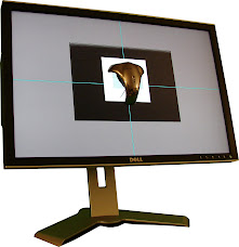 Dell 2408 имеет более широкий цветовой охват, чем контрольный монитор, особенно в области зеленого цвета. Тем не менее, зеленый тон позади пчелы (выделено пунктиром) на контрольном мониторе присутствует, а на «широкоохватном» Dell 2408 он выглядит черным. Зеленый тон возвращается, если посмотреть сбоку.